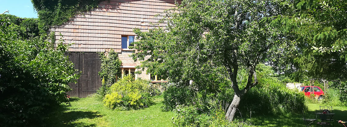 Die Scheune befindet sich auf einem ca. 2000 qm großen Grundstück. Der Garten wurde liebevoll naturnahe angelegt, u.a. mit einem Teich, der sich im Laufe der letzten Jahre zu einem wunderbaren Biotop entwickelt hat. Die Goldfische werden nicht gefüttert, es gibt keine Pumpe. Dafür tummeln sich Frösche, Molche, Ringelnattern und Libellen in und um den Teich.